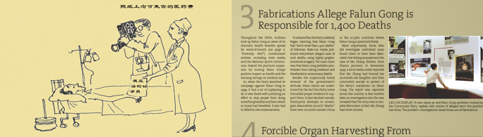 Pozadina: Kineske vlasti tvrde da je "praksa Falun Gonga rezultovala sa više od 1.400 smrtnih slučajeva. Iako je Falun Gong masovno vežban u Kini tokom devedesetih, za ovu tvrdnju prvi put se čulo u julu 1999, nakon što je režim započeo progon Falun Gonga. Od tada ovu tvrdnju iznova i iznova plasiraju publikacije i glasnogovornici KPK. Njena svrha je da minira podršku praktikantima Falun Gonga, koji su stalne žrtve oštrih kršenja ljudskih prava u Kini, uključujući nezakonita zatvaranja, uskraćivanje ustavnih prava, prinudni rad i mučenje, koje je rezultovalo sa više od 3.400 dokumentovanih smrtnih slučajeva.